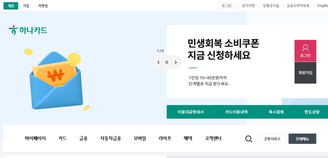 본인이 원하는 카드사 선택 후 소비쿠폰 형태로 충전됩니다.