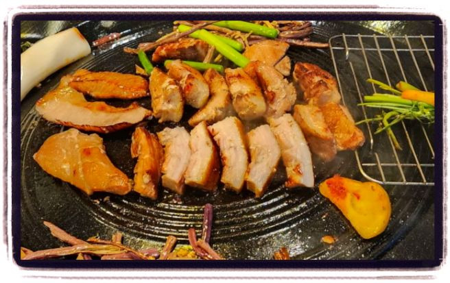 - 마늘, 김치도 함께 구우면 풍미 배가