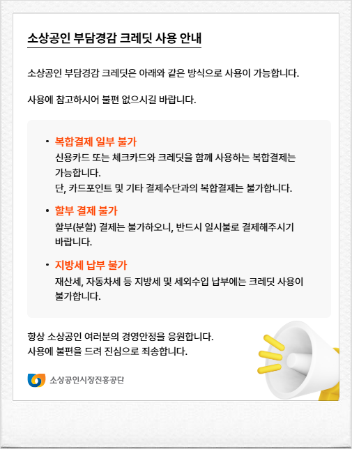 - 간편결제(삼성페이 등), 할부, 지방세 납부에는 사용 불가