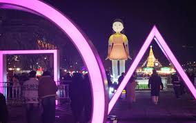 - 대형 오징어 게임 마크, NPC 캐릭터 조형물과 사진 촬영
